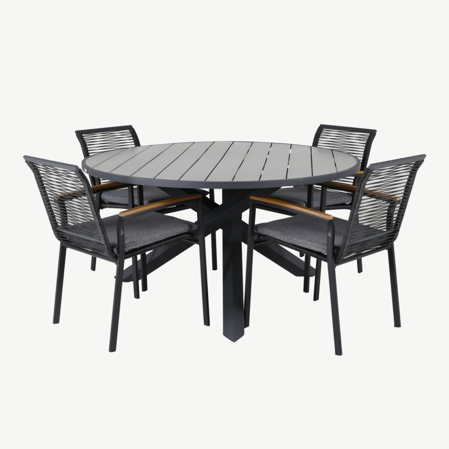 -20% Tasuta tarne -20% Tasuta tarne Parma ümmargune aiamööblikomplekt (puitplastkomposiit, must/hall, 4 tooli), GR21718 Aia söögilaua komplektid 1229,99 € Algne hind oli: 1229,99 €.983,99 €Current price is: 983,99 €. Laost otsas Vaata toodet