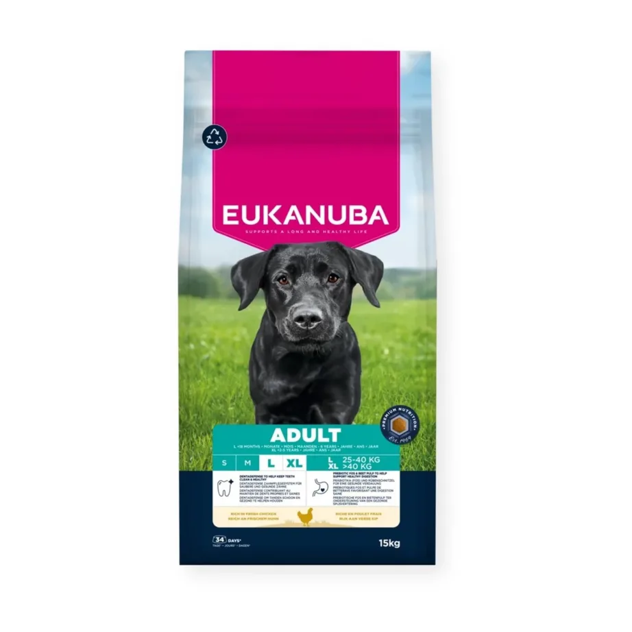 EUKANUBA Adult L/XL 15kg kana kuivtoit suurtele ja hiiglaslikele koertele liigeste ja hammaste toetamiseks Kuivtoit koertele 54,52 € Lisa korvi Vaata toodet
